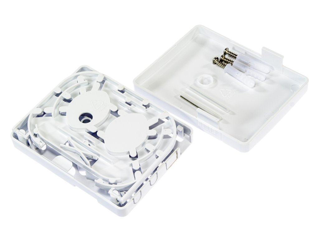 Optická FTTh zásuvka, 2 x SC/APC simplex, výklopná kazeta, 105x82x23 mm