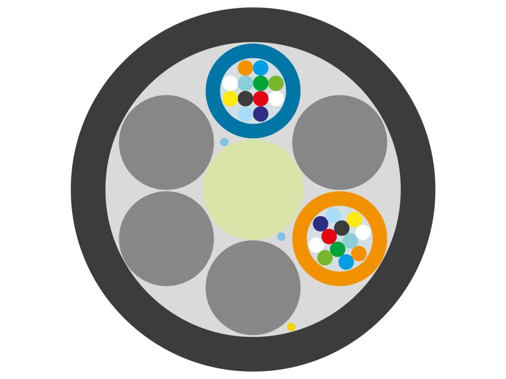 Optické vlákno je vedené v rúrkach naplnených gélom, ktoré sú ovinuté okolo centrálneho napínacieho prvku.