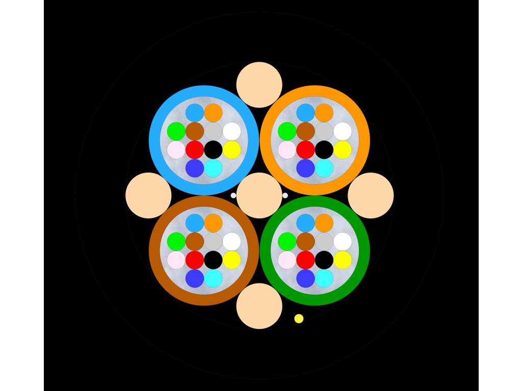 Optické vlákno je vedené v rúrkach naplnených gélom. Napínacie prvky sú umiestnené spolu s rúrkami.