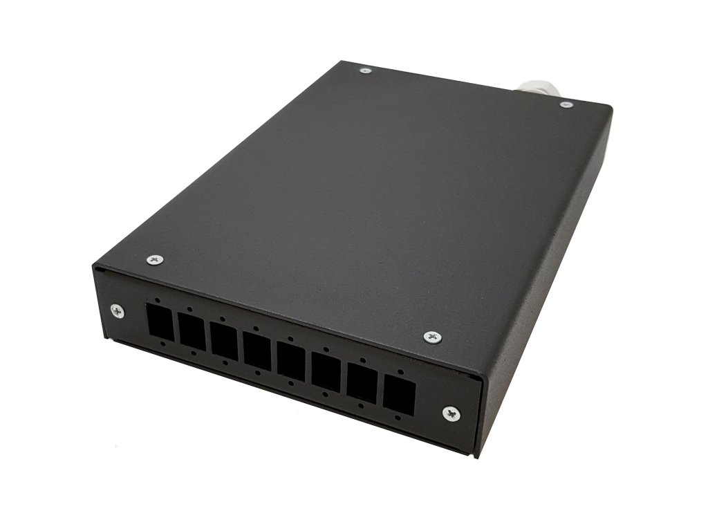 Malá optická nástenná skrinka vytvorená v spolupráci so skúsenými inžiniermi. 8 simplexných portov SC - Rozmery: Š=135, V=200, H=35 mm - Hmotnosť: 0,5 kg - Farba: čierna