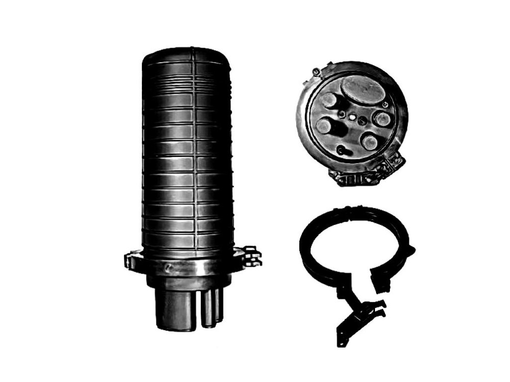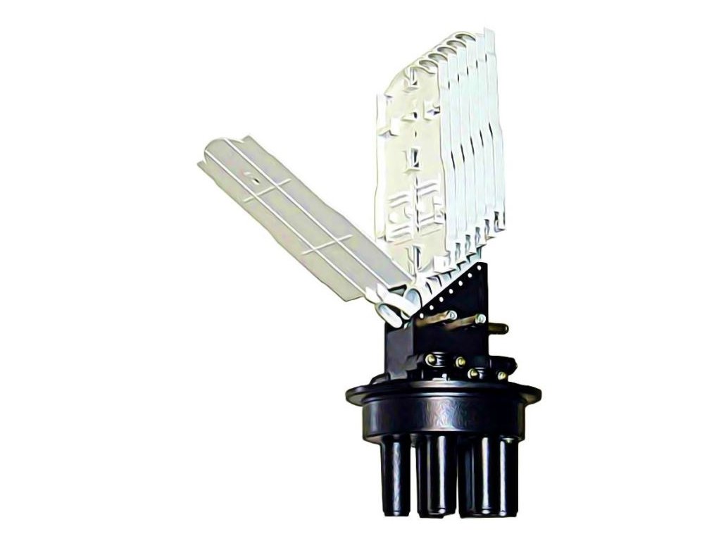 Hrncová spojka pre max. 144 vlny, 4x kruhový prívod, 1x oválny prívod, vybavená pre 24 zvarov