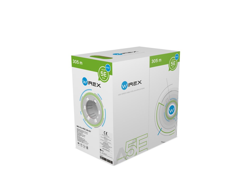 Inštalačné káble WIREX sa vyznačujú vysokou spoľahlivosťou a stabilitou parametrov počas celej životnosti inštalovanej metalickej dátovej siete. Zvládajú najnáročnejšie prenosové protokoly, ktoré možno podľa noriem prevádzkovať na kabeláži CAT5E. Tento typ kábla možno inštalovať v rôznych prostrediach, ako sú kancelárske priestory alebo dátové centrá. Kábel sa dodáva vo farebnej škatuli, čo umožňuje rýchlo identifikovať, o aký typ kábla ide v inštaláciách, kde sa používa viacero typov káblov. Pre prehľadnosť je metráž kábla označená od 0 m do 305 m.