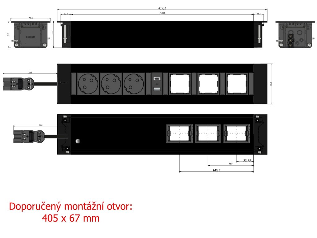Zásuvka lze také dodat s organizátorem pro vedení kabelů v libovolné délce.