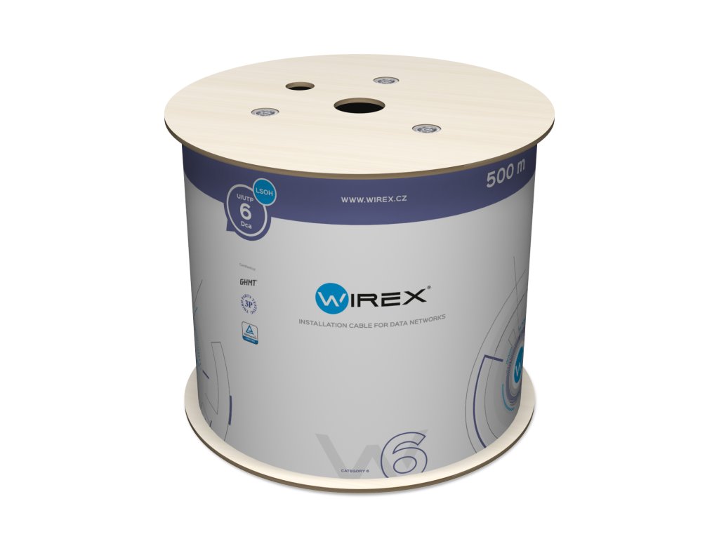 Instalační kabely WIREX se vyznačují vysokou spolehlivostí a stabilitou parametrů po celou dobu životnosti instalované metalické datové sítě. Zvládají nejnáročnější přenosové protokoly, které je možno dle standardů provozovat na kabelážích kategorie CAT6. Tento typ kabelu je možno instalovat v různých prostředích, jako jsou administrativní prostory nebo datová centra. Kabel je dodáván na dřevěné cívce, díky které je usnadněna manipulace při odmotávání kabelu. Pro přehlednost je metráž kabelu značena od 0 m do 500 m.