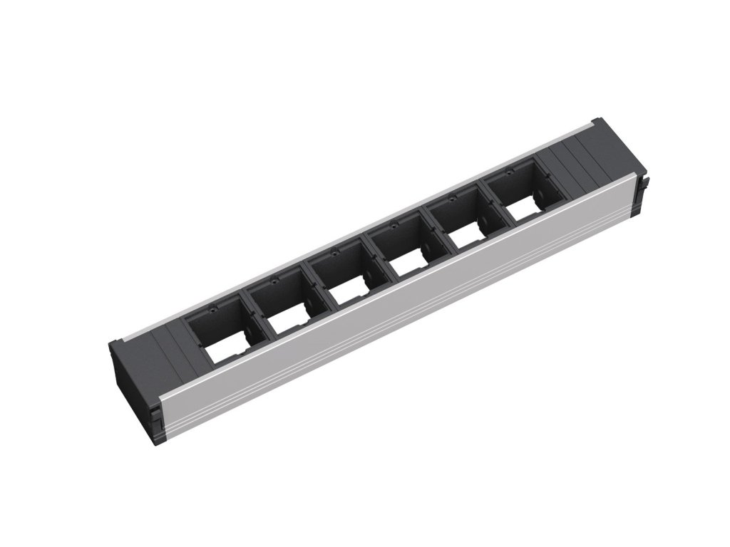 zásuvková jednotka pro systém zásuvek CONI. Profil zásuvkové jednotky je z eloxovaného hliníku.